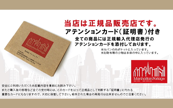 もしManhattan Portage/マンハッタンポーテージを購入して証明書の「アテンションカード」が付いていなかったら本物の証明もできませんし、もちろん修理も正規店で受けることはできません。(本物証明が無いので対応しれくれません)